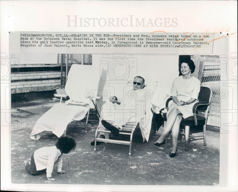 Caption: President and Mrs. Johnson relaxing on a sun deck at the Bethesda Naval Hospital.