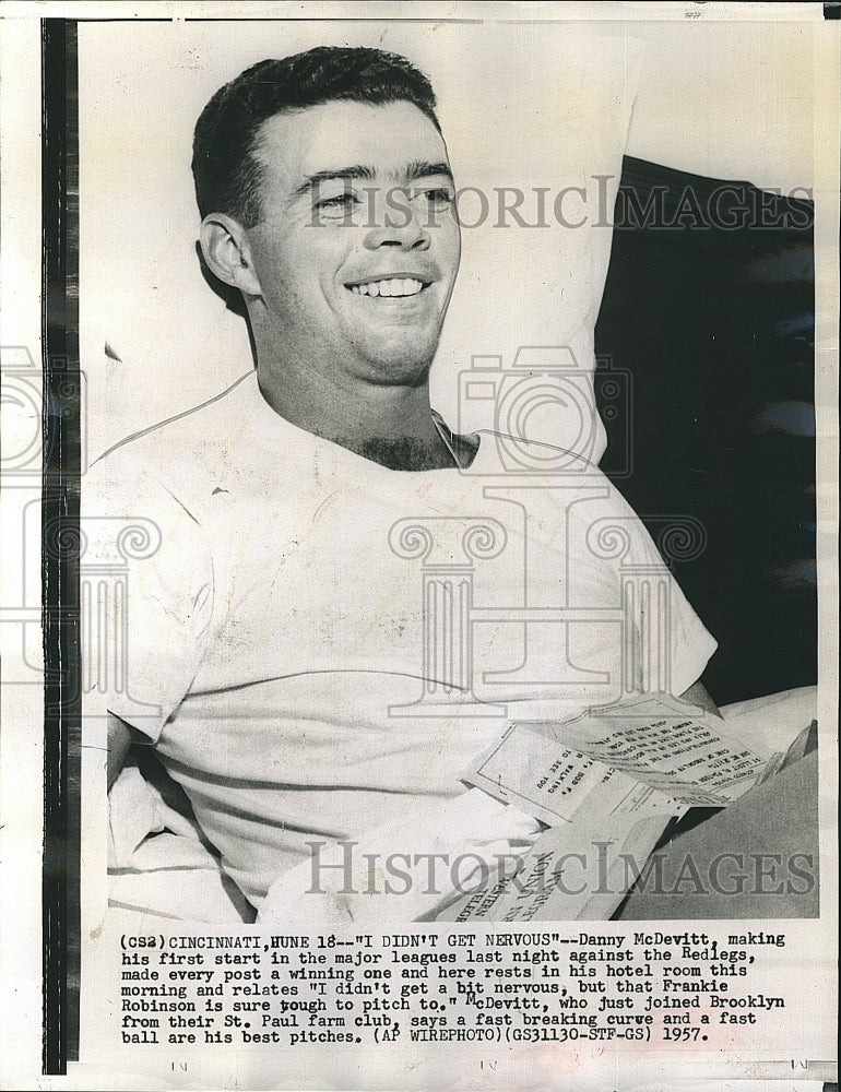 Shown in hotel room after pitching his first major league game.