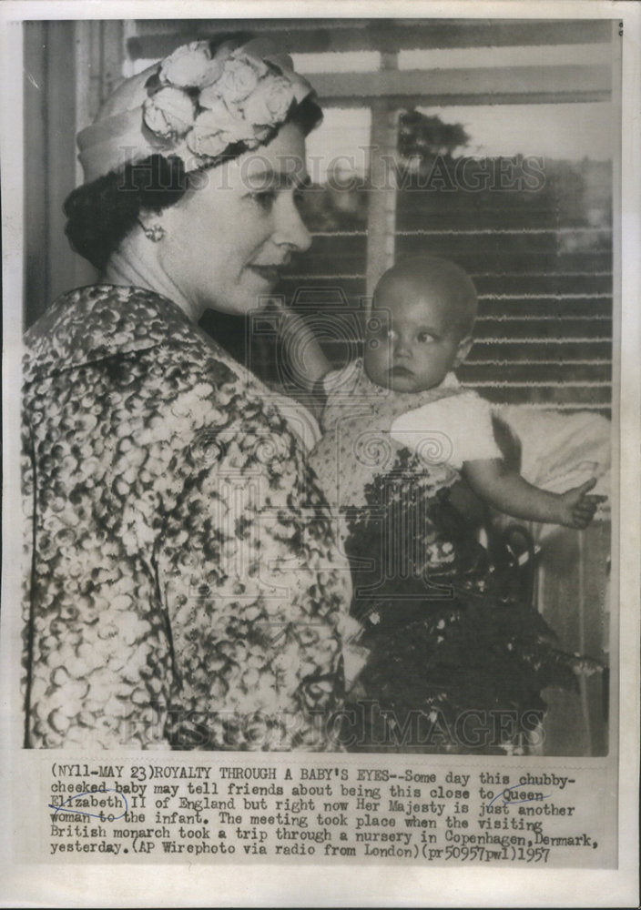 Some day this cubby-cheeked baby may tell friends about being this close to Queen Elizabeth II of England, but right now Her Majesty is just another w