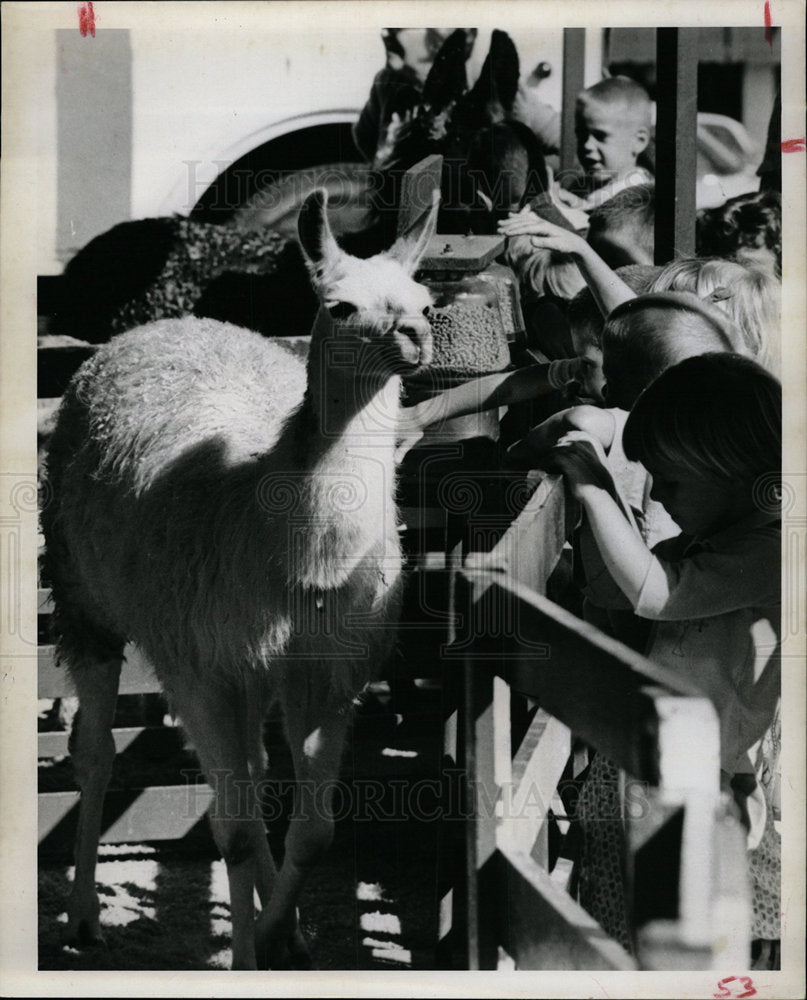 A llama appears at Jett’s Petting Zoo in Central Plaza.