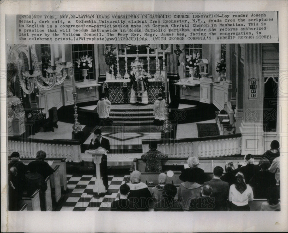 Lay reader Joseph Geraci, dark suit a Columbia University Student from Rochester, N.Y. Catholic Church Innovation.