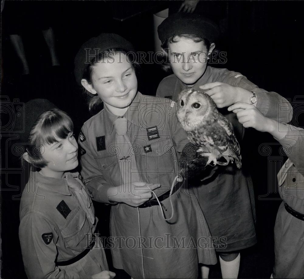 Zoo Qurst Prizewinners.: Sixty-six young members of the Scout and Guide Managements who, amongst other task in the London Zoo’s a 1967 Zoo Quest competition, successfully discovered that a “Fellisonda” and a “Hylobates hoslock” are – today received thei~ prizes from the Director of Zoos, Mr. Colin Rawlings, at a reception at the London Zoo. Some of the animals these 66 cubs, Brownies, Scouts and Guides and the hundreds of not-so-successful competitors met on their trips to the London Zoo during the summer, were at that presentations,. “Felis Onca” and “Hylobates Hoolock”, were not there though. Respectively, a jaguar and a gibbon, it was felt that they would be a little too lively for the presentation ceremony and the tea party that followed it. Photo shows Brownie guides 1st. Prize winners, pictured after the presentation with “Ollie”, the tawny owl. From the 2nd. East Bridgeford (Nottingham) Brownie pack, they are ( L to R) , Ann Smith, Caroline Atkins, Keran Cheetham, and Deanne FRogatt.