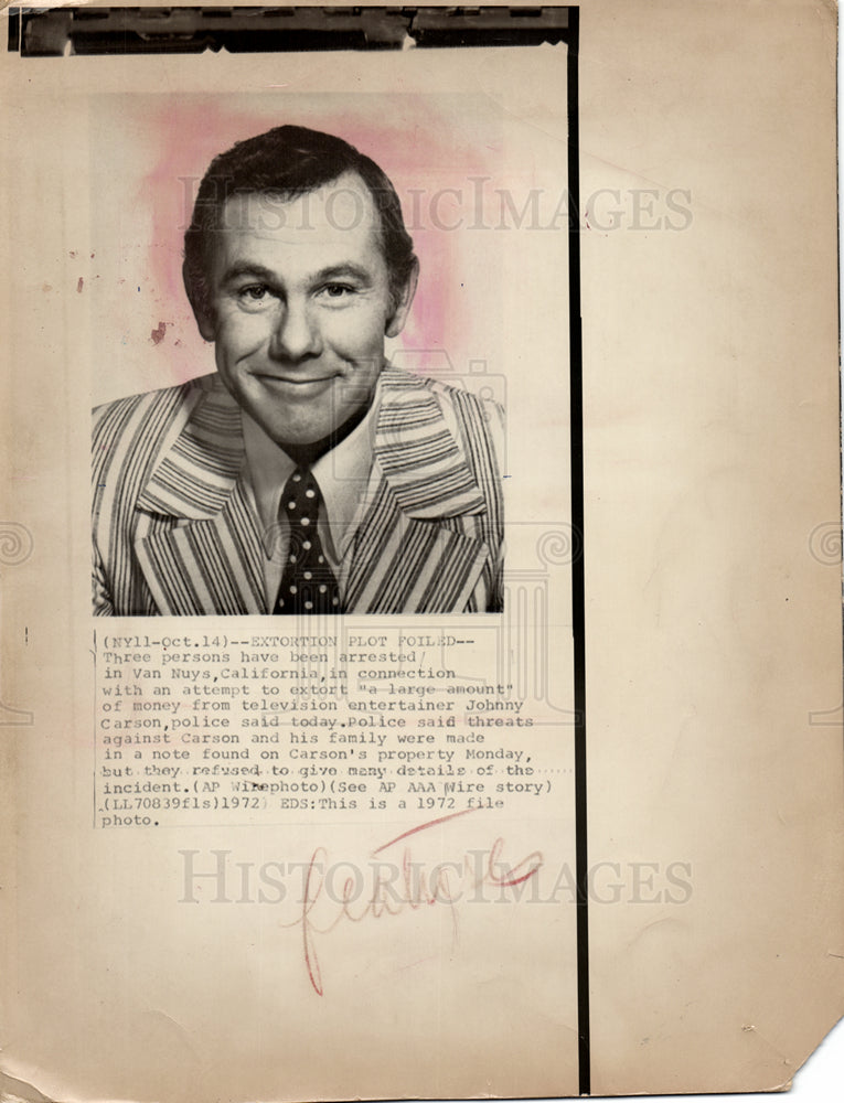 Caption: Johnny Carson Extortion.