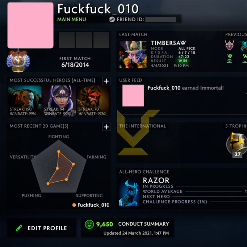 Immortal | MMR: 6000 – Behavior: 9650 Sale Cheap Online